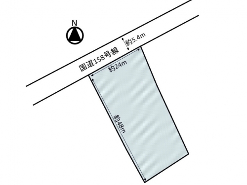 奥行きのある長方形型で建物配置の自由度が高く、店舗・事務所・資材置場など幅広い用途に活用可能。